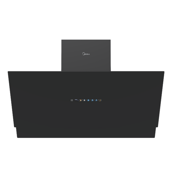 קולט אדים צמוד קיר 90 ס״מ בעיצוב זכוכית שחורה מחוסמת.