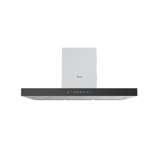 קולט אדים צמוד קיר 90 ס״מ מעוצב שחור בשילוב זכוכית מחוסמת.